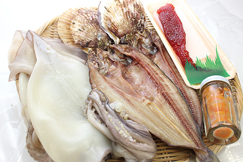 八戸から鮮度抜群の海鮮セットをお届け。真イカ・殻付きホタテ・イクラ醤油漬けの気軽な贈り物にもぴったりなセットです。